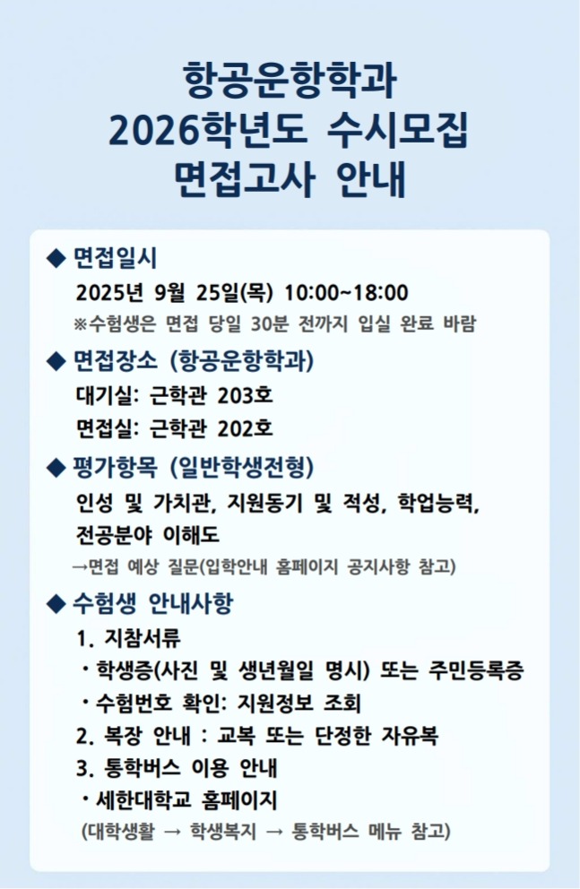 2025년 세한대-플로리다텍 항공운항학과 복수학위제도 3기 학생 선발 공고_250812