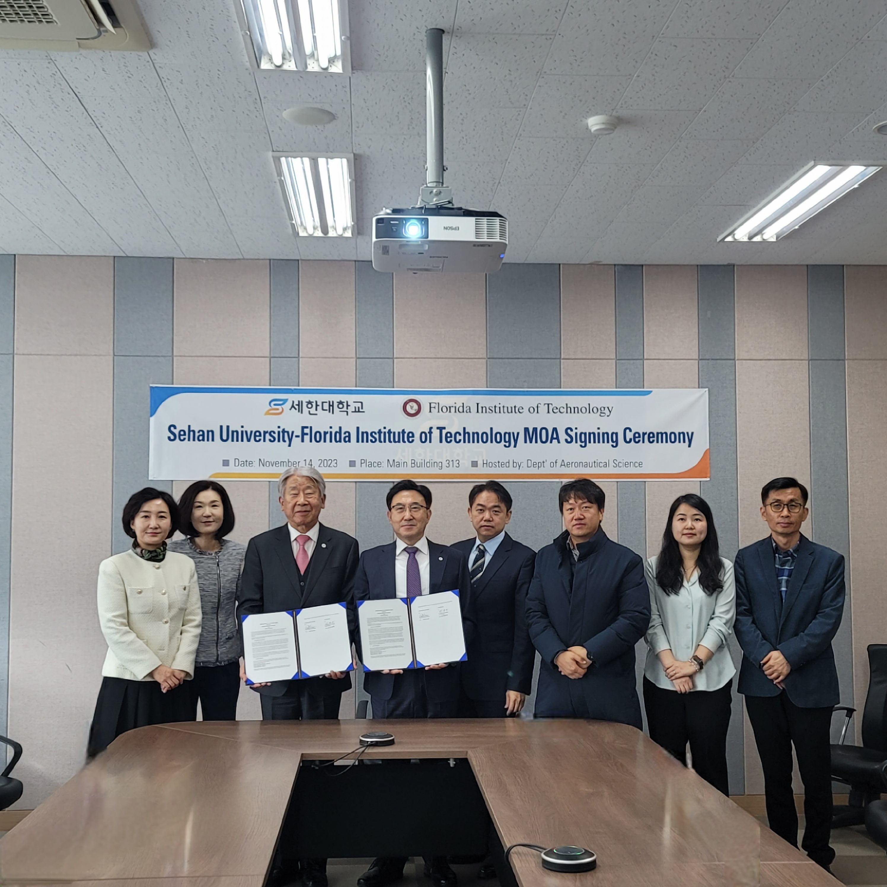 2023년 11월 14일(화), 세한대학교(총장 이승훈)는 플로리다텍(Florida Institute of Technology, 총장 Dr. John Nicklow)과 미국 조종사 취업협조 및 복수학위 제도에 관한 학학협력협정식을 거행하였다고 밝혔다.